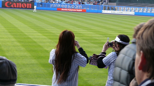 兩個身穿Matsui球衣的日本女生興高采烈的衝到我們前方的走道上