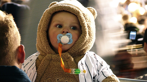 這位洋基逆轉猴曾經一度在全場跟著YMCA音樂起舞時拿下"帽子"和奶嘴喝奶