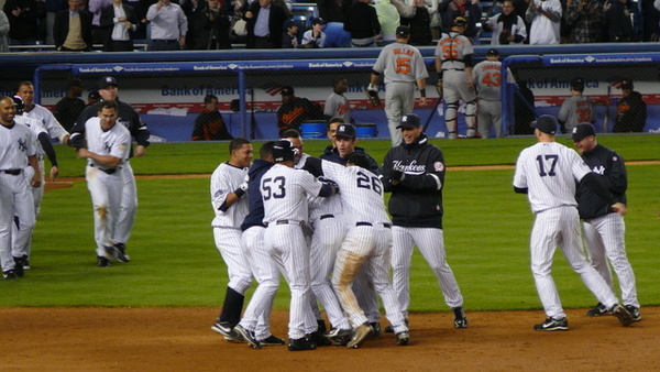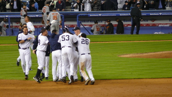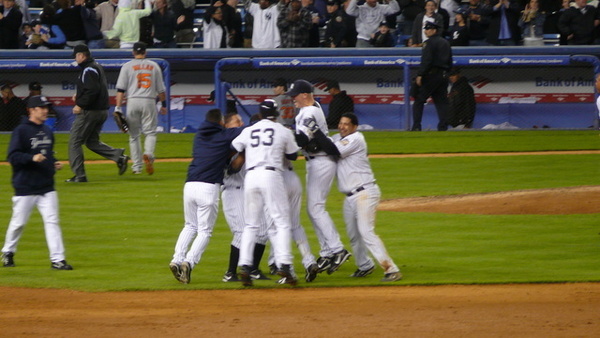 前幾天先發早早下班的Mussina...第一時間就出現在狂歡的現場 (第一張照片最左邊那位身穿深藍色長T的就是Moose...)