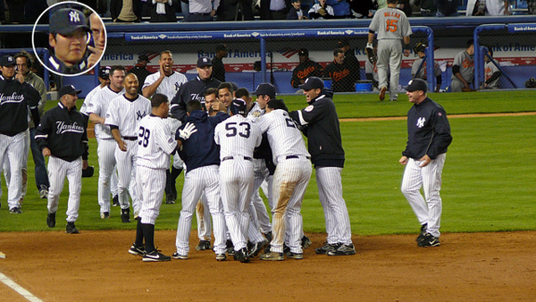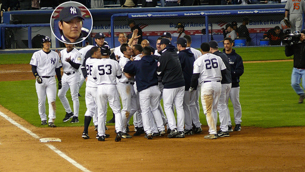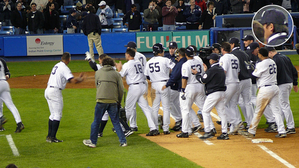 在洋基攻勢再起的九局下半...不知是不是因為球迷的鼓譟聲實在太大...